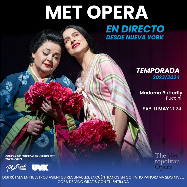 La aclamada ópera Madama Butterfly llegará directamente desde el prestigioso Metropolitan Opera de Nueva York. Esta obra maestra de Giacomo Puccini, protagonizada por extraordinarias sopranos como Aleksandra Kurzak y Asmik Grigorian en su muy esperado debut en el Met, promete sumergir a los espectadores en una experiencia emocionante y conmovedora.