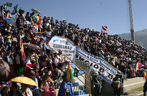 Una ceremonia ancestral (waj’ta, en aymara) en la que participaron amautas andinos (sacerdotes) y representantes de pueblos indígenas de los cinco continentes del mundo abrió ayer la Conferencia Mundial de los Pueblos sobre el Cambio Climático y los Derechos de la Madre Tierra que reúne a más de 20 mil delegados de 129 países en […]
