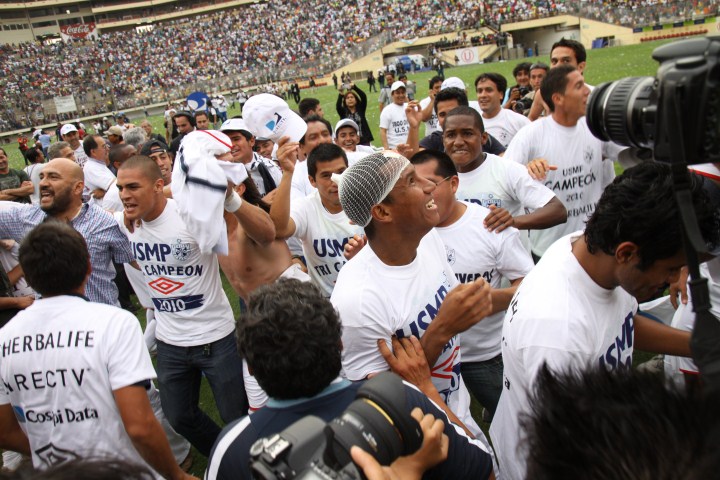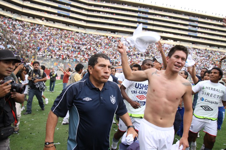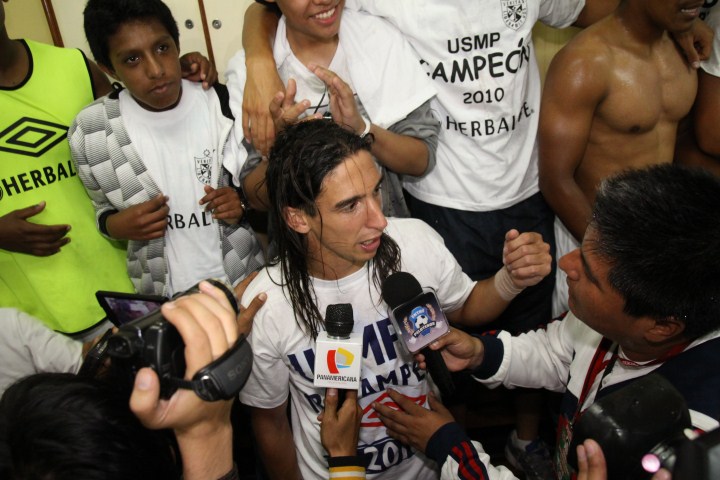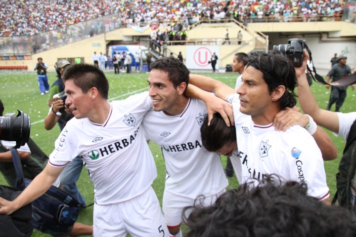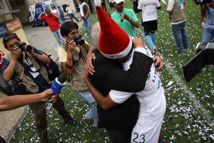La celebración de Ronald Quinteros, vestido con el gorro de Papá Noel, graficó muy bien el sentimiento que vivió el plantel. La alegría del tridente ofensivo conformado por Germán Alemanno, Pablo Vitti y Héber Arriola fue la recompensa a un excelente año. Revive en imágenes la celebración del campeón 2010.
