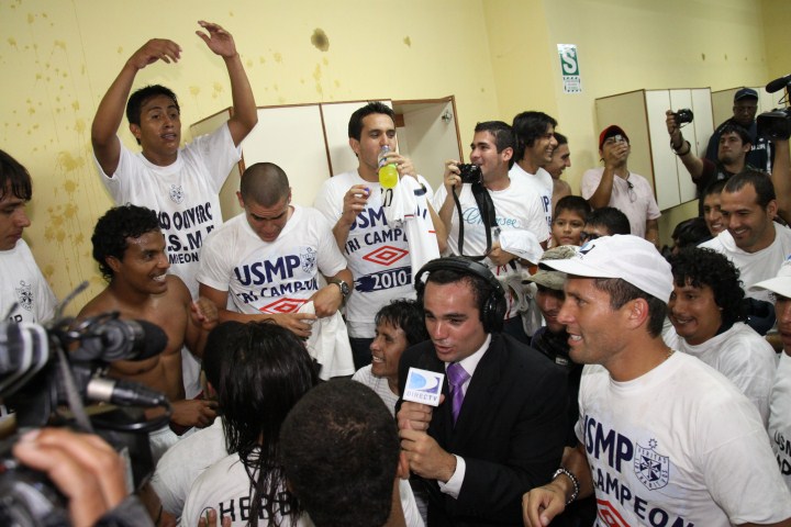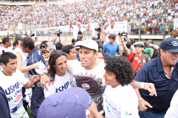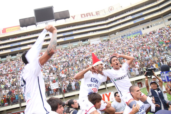 La celebración de Ronald Quinteros, vestido con el gorro de Papá Noel, graficó muy bien el sentimiento que vivió el plantel. La alegría del tridente ofensivo conformado por Germán Alemanno, Pablo Vitti y Héber Arriola fue la recompensa a un excelente año. Revive en imágenes la celebración del campeón 2010.