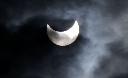 Gran parte de la humanidad ha estado viendo el clic primer eclipse parcial de Sol de 2011, en el que la Luna se interpone parcialmente al astro.