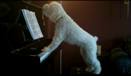 Perro que como sus dueños no le tocan el piano para cantar, ha decidido tomar el asunto entre sus manos (o patas) y tocar el mismo el piano.