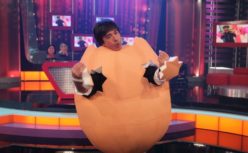 El conductor contagió con su chispa y picardía a los televidentes y llenó de alegría y vivaces ocurrencias el set de La Noche es Mía, a su público e invitados. Tras mas de 10 años de ausencia televisiva, Carlín se reencontró nuevamente con su público, ante quienes quiso simbolizar el nacimiento de este su nuevo programa nada menos que saliendo de dentro de un disfraz de huevo.