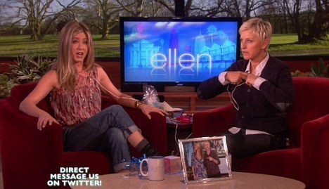 Con Jennifer Aniston no fue diferente. La actriz, que fue a promover su nuevo film Just Go With It, tuvo que probarse un regalo anticipado por su cumpleaños número 42: un dispositivo que promete agrandar los senos a través de la vibración.