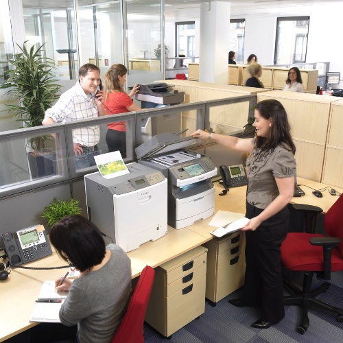 Al consolidar todos estos dispositivos en una sola unidad, los usuarios pueden imprimir etiquetas de vinilo para marcación de productos desde una bandeja, combinar impresión en formularios y etiquetas desde otra bandeja, e imprimir formas electrónicas en papel carta desde una tercera bandeja; y por si fuera poco, imprimir en papel de colores o tarjetas especiales, utilizando una cuarta bandeja de alimentación. Para ampliar los procesos, la salida de impresión puede ser redirigida hacia bolsillos separados para cada usuario; esto mejora la velocidad de los procesos y reduce los errores.