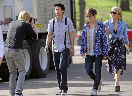 Los jóvenes personajes de la serie «Glee» se adueñaron hoy del Central Park durante el rodaje del episodio final de la segunda temporada, en el que se desplazan desde un pequeño pueblo en el estado de Ohio (EU) para asistir a una competición en Nueva York.
