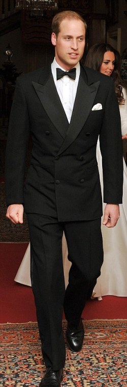 El príncipe William, como el resto de los invitados masculinos, eligió un elegante esmoquin para una velada que incluirá música y baile para los familiares y amigos más cercanos.