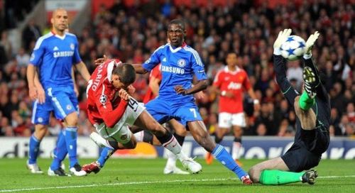 Manchester United supero a un endeble Chelsea por 2 a 1 y entro a las semifinales de la Champions League. Podria jugar ante el Schalke 04 del peruano Jefferson Farfán que juega mañana ante el Inter con una ventaja de 5 a 2 en la ida.