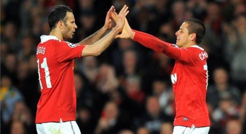 El nuevo idolo, «Chicharito» Hernandez se unio con el máximo idolo del Manchester United para darles el primer gol a los 43 minutos. El inacabable Ryan Giggs dio un pase preciso al corazón del área donde Hernandez saco ventaja a la defensa de los «Blues» y marcó.