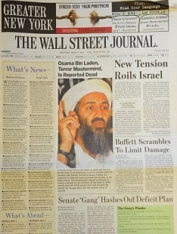 El análisis preliminar que hacen los diarios de los Estados Unidos de la muerte de Osama Bin Laden en la población de Abbottabad, donde los Estados Unidos realizaron meses de inteligencia, es que se producirán dos efectos inmediatos.
