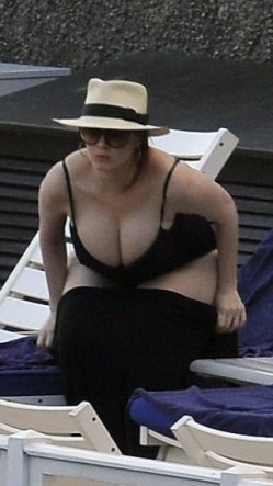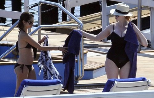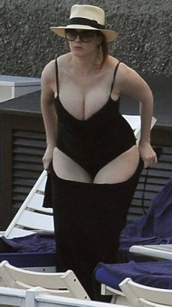 La voluptuosa actriz Christina Hendricks, reconocida por su insinuante papel en la exitosa serie de televisión Mad Men, fue vista en Italia en traje de baño demostrando que todo lo suyo es natural.