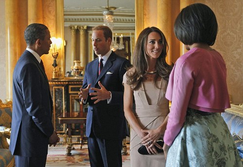 William y Kate, recién llegados de su luna de miel en las islas Sheychelles, se han sumado al recibimiento que la familia real británica ha brindado al presidente de los Estados Unidos Barack Obama y a su esposa Michelle. Ha sido hoy cuando los Obama han conocido a la nueva duquesa, que se ha llevado la atención de todos los objetivos durante el encuentro entre ambas parejas.