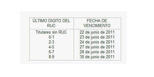 La fecha de presentación de la DAC se realiza de acuerdo al siguiente cronograma, considerando el último dígito del número de R.U.C. de los titulares de la actividad minera.