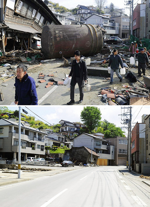 Japón se recupera del desastroso tsunami que los golpeo hace tres meses atrás, a continuación imagenes comparativas del desastre tras el tsunami y fotos actuales.