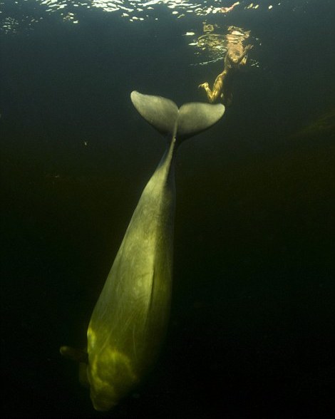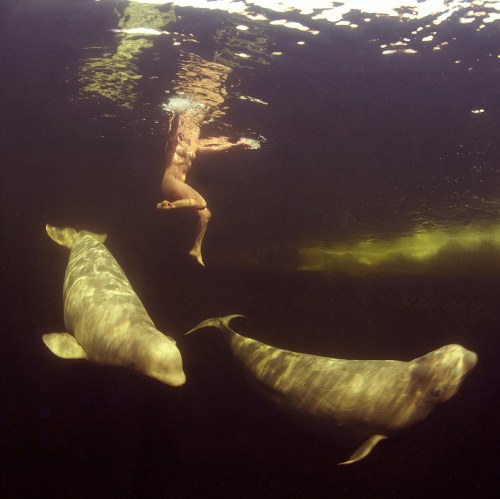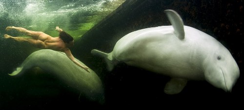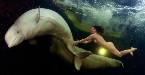 Debido a que las belugas huyen de todo tipo de material artificial con el que tomen contacto, la científica rusa Natalia Avseenko asumió el reto de nadar desnuda en el frío mar Ártico, que en ese momento registraba una temperatura de 1,5º bajo cero.