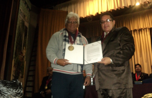 Hugo Sotil y Luis La Fuente dos glorias del fútbol peruano, en el marco de las celebraciones por el 62 aniversario de Breña, fueron condecorados con la Medalla de Honor de este distrito por parte del alcalde José Gordillo Abad, durante la sesión solenme que se llevo a cabo el pasado viernes 15 de julio en el auditorio del colegio María Auxiliadora.