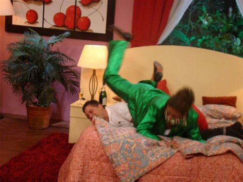 El conductor de “Hola a todos” se comportó como todo un galán llenando de halagos y “cariñitos” a la bella Delly Madrid quien lo recibió en su alcoba aprovechando la ausencia de su “tutora” la popular Portola caracterizada por Carlos Álvarez.