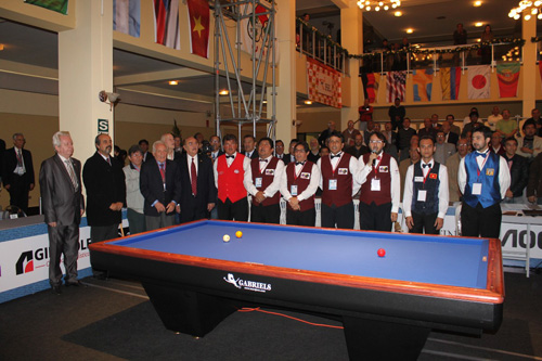 Hoy Lima se vistió de gala, pues se llevó a cabo la inauguración de la sexagésima cuarta edición del Campeonato Mundial de Billar 3 Bandas en el Círculo Militar de Jesús María. En esta impresionante ceremonía de inauguración fueron presentadas las 24 delegaciones que partciparán en este campeonato mundial: El Perú como digno anfitrión, seguido por Alemania, Austria, Argentina, Bélgica, Colombia, Corea del Sur, Costa Rica, Dinamarca, Ecuador, Egipto, España, Francia, Holanda, Italia, Japón, México, Portugal, República Checa, Suecia, Turquía, Estados Unidos y Vietnam.