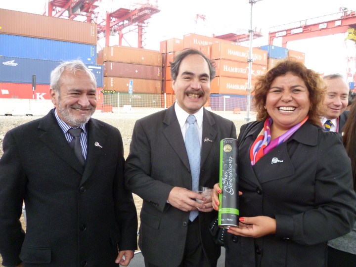 Con el fin de iniciar una gira internacional, hoy salió del puerto del Callao el primer contenedor con la Marca Perú, lo cual permitirá promover los productos peruanos de exportación e incrementar el flujo de capitales.