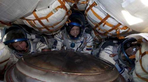 Como manda la tradición rusa, los astronautas recibieron tras su llegada una manzana fresca. Al principio, los tripulantes tuvieron que permanecer sentados envueltos en mantas, porque sus músculos estaban muy debilitados por la estancia de cinco meses en la ISS, sin gravedad, donde trabajaron desde abril.