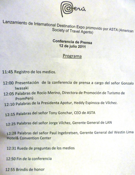 PromPerú y la Asociación Peruana de Operadores de Turismo Receptivo e Interno (Apotur) anunciaron que nuestro país será la sede del International Destination Expo 2012, que se llevará a cabo del 1 al 4 de marzo en la ciudad de Lima. Este evento es organizado por la Sociedad Americana de Agentes de Viajes (ASTA, por sus siglas en inglés) y es uno de los encuentros de negocios turísticos más importantes del mundo.