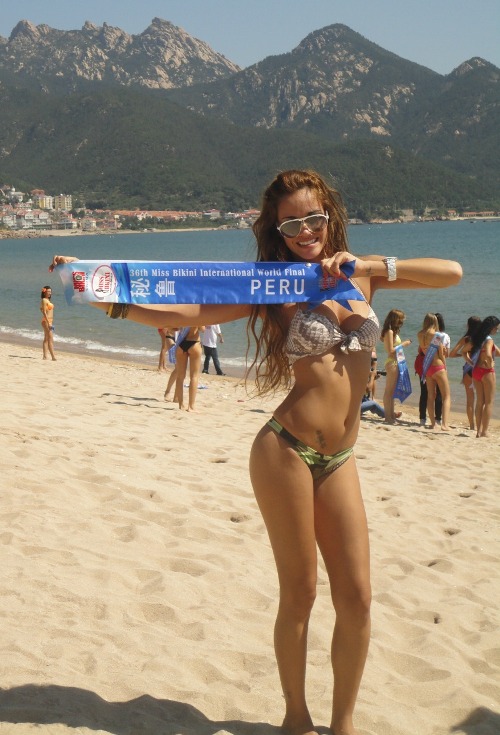 La sexy rubia quedó segundo lugar entre las 70 aspirantes al título de Miss Bikini Internacional. Nuestra representante dejó en alto el nombre del Perú al coronarse como la segunda mujer más bella del mundo con un bikini. La isla de Sanya en China se rindió ante la belleza de la peruana.