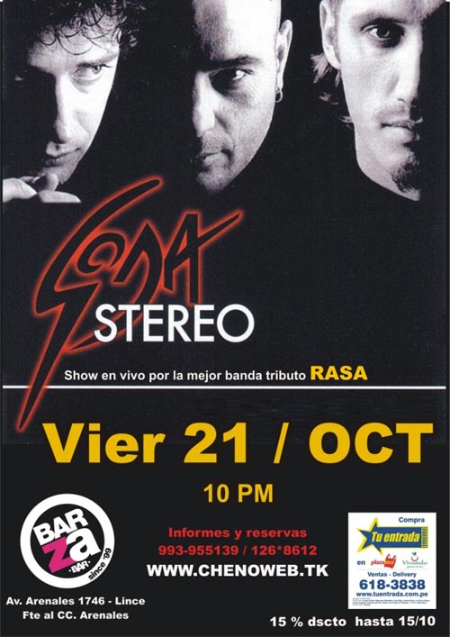 Confirma tu asistencia en: Facebook Tributo Soda Stereo