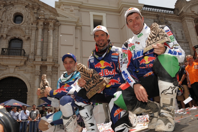 Entre los ganadores hubo dos franceses, un argentino y un holandés. La categoría motos fue la que animo más la competencia con la batalla entre el campeón francés Ciryl Despres y el español Marc Coma. En autos la competencia entre los dos paises termino igual. El francés Stephane Peterhansel se llevó el rally, segundo termino el español «Nani» Roma.
