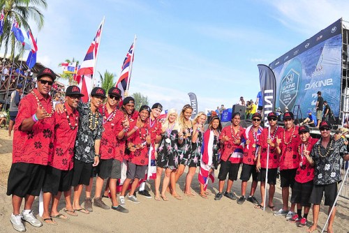En el curso de los ocho días, la cantidad record de 303 surfistas compitieron en tres divisiones. Aquellos que pudieron ganar sus series se mantuvieron en el Evento Principal. Aquellos que no, cayeron al Repechaje. El formato de doble eliminación utilizado por la ISA asegura a cada uno de los atletas dos chances para probarse. En el sexto día del evento, la competencia finalizó temprano y la atención se centró en la ISA Aloha Cup, evento original de la ISA que utiliza cinco surfistas por equipo para realizar en una competencia de surf por postas. Este formato es uno de los que la ISA considera que podría utilizar una vez que el surfing sea incluido en las Olimpíadas. Al concluir la final de una hora, Brasil, con un surfista en el agua y la oportunidad de sacarle la punta a Francia, hizo temblar a los espectadores, pero sin olas adicionales para que pudiera dar con el puntaje necesario para ganar, el Equipo Francés se coronó campeón, abrazándose y cantando de alegría. Esta edición de la ISA Aloha Cup demostró ser “la más excitante que recuerdo”, según dijo el Presidente de la ISA, Aguerre. Al