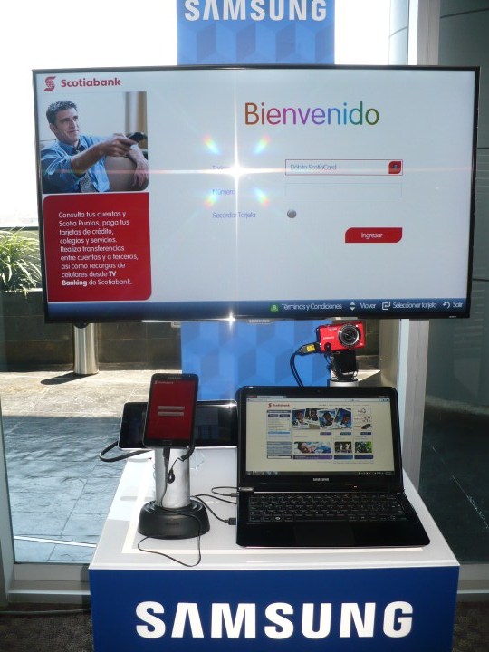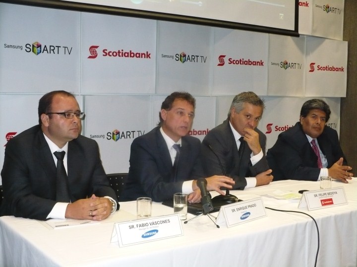 Scotiabank Perú, en alianza con Samsung anunció el lanzamiento de su nueva plataforma de banca por televisión, o TV Banking, que permitirá a los clientes realizar, desde cualquier televisor inteligente Smart TV, operaciones bancarias de una manera cómoda, amigable, rápida y segura.