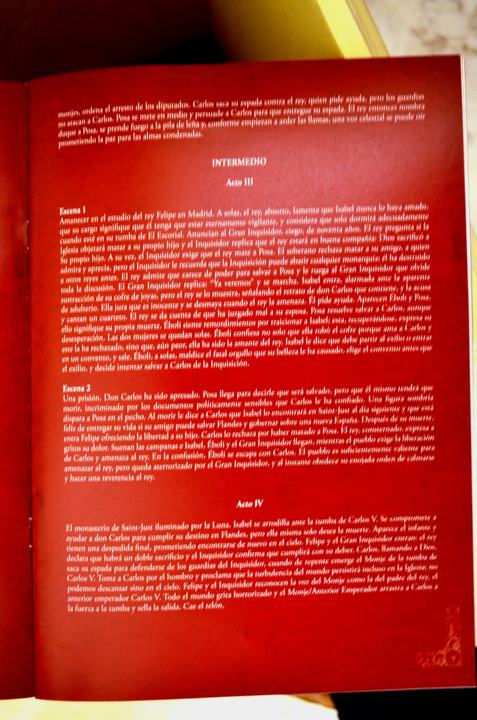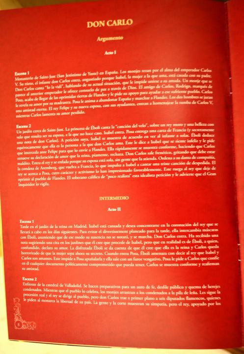 Don Carlos es una de las obras maestras de Giuseppe Verdi, la belleza de sus páginas y la fuerza vital de sus personajes hacen considerarla como muestra de la madurez y poderio del gran compositor. El libreto original es obra de François Joseph Méry y Camille du Locle, basado en el drama “Dom Karlos, Infant von Spanien” de Schiller. La Ópera de París la encargó a Verdi como parte de los actos que se realizarían para la Exposición Universal de 1867, pero fue finalmente estrenada en París, el 11 de marzo del mismo año.