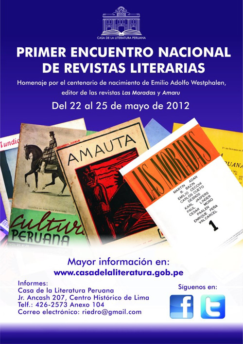 Desde el mes de febrero la Casa de la Literatura Peruana (CASLIT) lanzó a nivel nacional la convocatoria para participar en el I Encuentro Nacional de Revistas Literarias, actividad que se realiza como un homenaje al centenario del nacimiento de Emilio Adolfo Westphalen, editor de las revistas Las Moradas y Amaru.