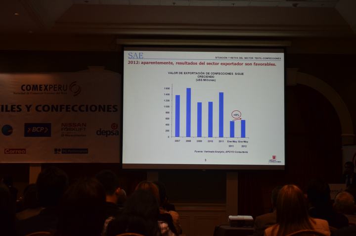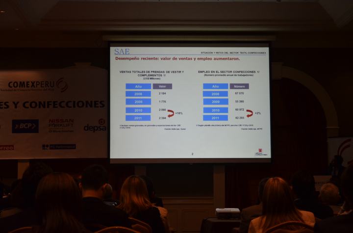 Durante el foro se destacó que en el sector de textiles durante el 2011 se exportó un total de US$ 448 millones, lo que representa un crecimiento del 24% con respecto al 2010, las confecciones se vendieron al exterior por un valor de US$ 1,540 millones, lo que equivale a un incremento del 28.2% en relación al 2010.