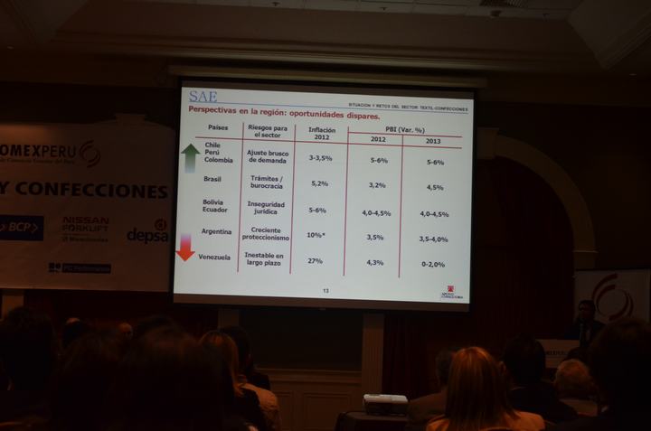 Finalmente, se dijo que los textiles y confecciones nos demuestran que la apertura comercial y los esfuerzos empresariales vienen empujando el coche para recuperar la tendencia del sector. Los resultados obtenidos en Sudamérica nos dan un claro ejemplo de posicionamiento y diversificación de mercados.