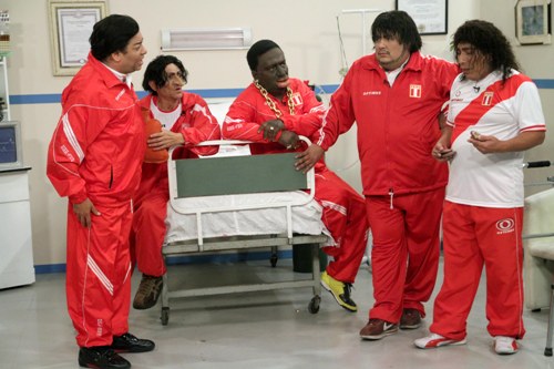 Habitación de una clínica local y en ella están los ex convocados y ahora “lesionados” jugadores de la Selección Nacional de Fùtbol : El Loco Vargas, Acasiete, Farfán y Claudio, quienes no podrán jugar este domingo ante Uruguay.