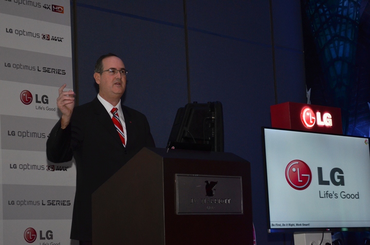El Sr. Hyo Song Jang, Director de Comunicación Móvil, con el Sr. James Leigh, Director de Marketing, estuvieron a cargo de la presentación de la serie LG Optimus «L», el Optimus 4X HD y el Optimus 3D MAX.