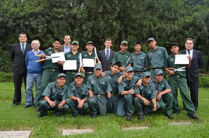 La formación en Jardinería que se brinda consiste en un adiestramiento teórico-práctico durante un período de seis meses que es realizado en las instalaciones del Camposanto de JARDINES DE LA PAZ de La Molina y Lurín. Durante su participación, los jóvenes son capacitados en temas como Recursos Naturales, Ecología, Técnicas de Riego, Uso de Abonos, Producción para el Manejo de Plantas Ornamentales, así como Mantenimiento y Diseño de Jardines, entre otros.