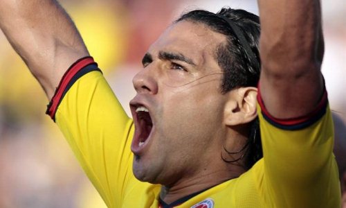 El «Tigre» Radamel Falcao marcó el primero de Colombia al minuto de juego tras un pifia en el area que quedo servida para su pierna derecha.
