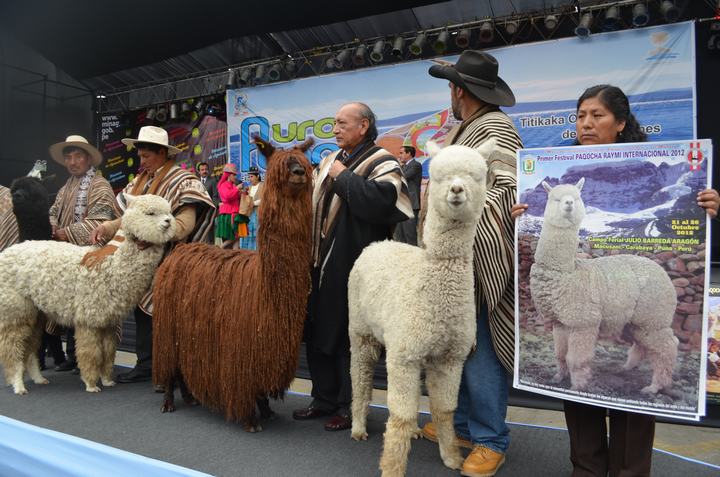 Fibras de alpaca que transformadas se exportan a los principales mercados mundiales. El mundo de la textilería en el Altiplano ha desarrollado diversos y vistosos textos idiomáticos estampados en diseños y grafías diferenciadas por los pisos altitudinales. Unos son ponchos, aguayos, fajas, chullos, anacos y chumpis de las alturas y otros son los que fraguan las manos, la memoria y la vista de hombres y mujeres de las islas y de las orillas del Titikaka.