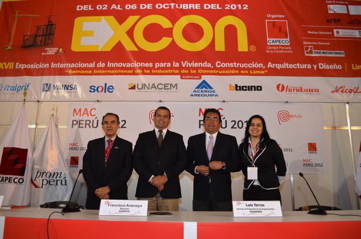 PROMPERU organiza MAC PERÚ 2012 en coordinación con la Cámara Peruana de la Construcción (Capeco) como parte de una serie de actividades que se desarrollan con la finalidad de impulsar las ventas externas de este sector, el cual viene mostrando un incremento sostenido; así como diversificar mercados y aprovechar los acuerdos comerciales suscritos.
