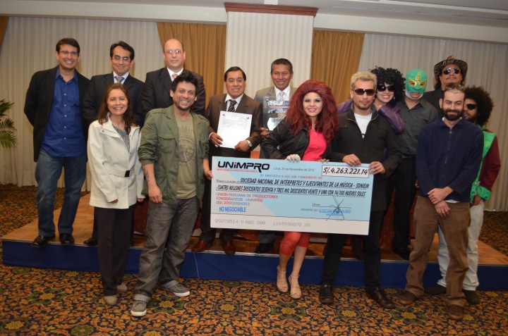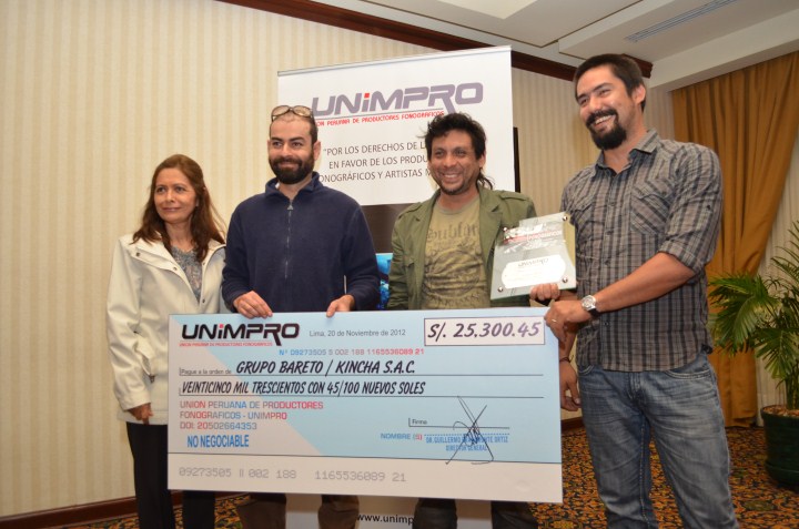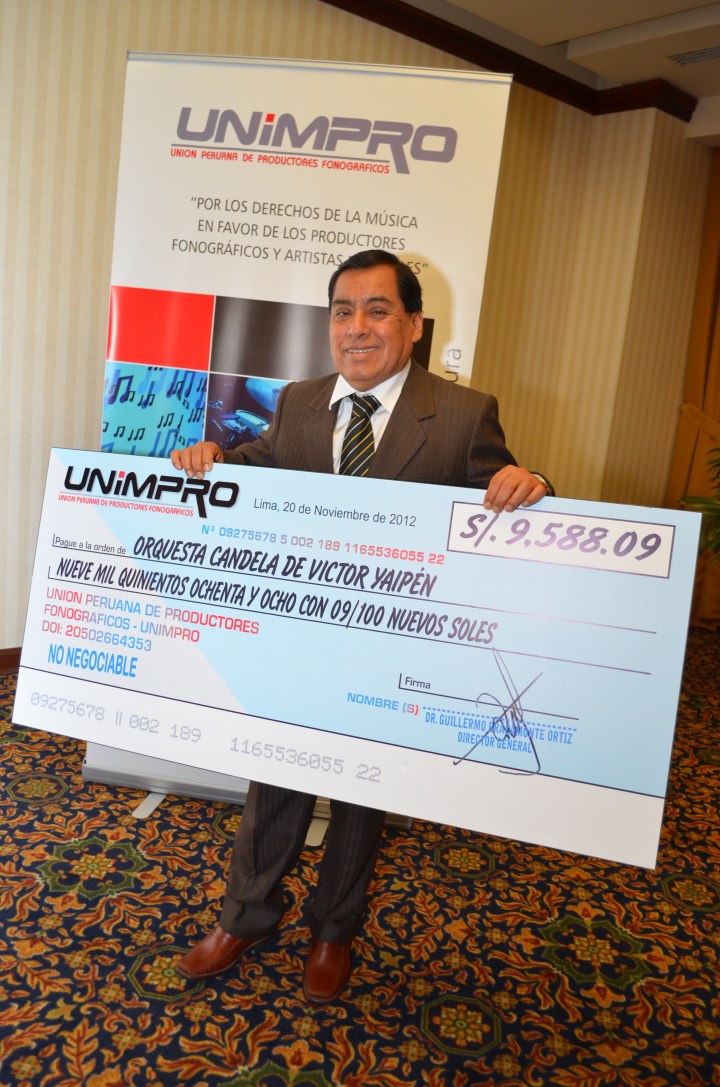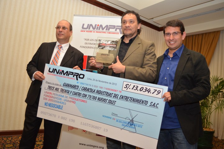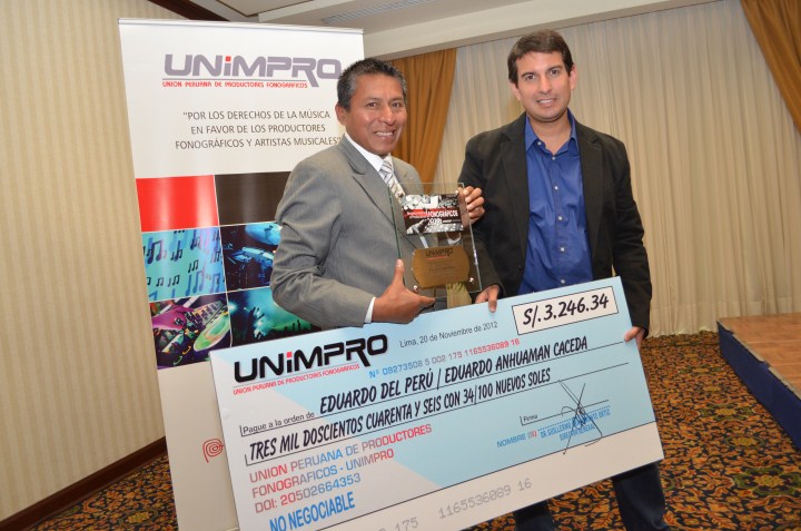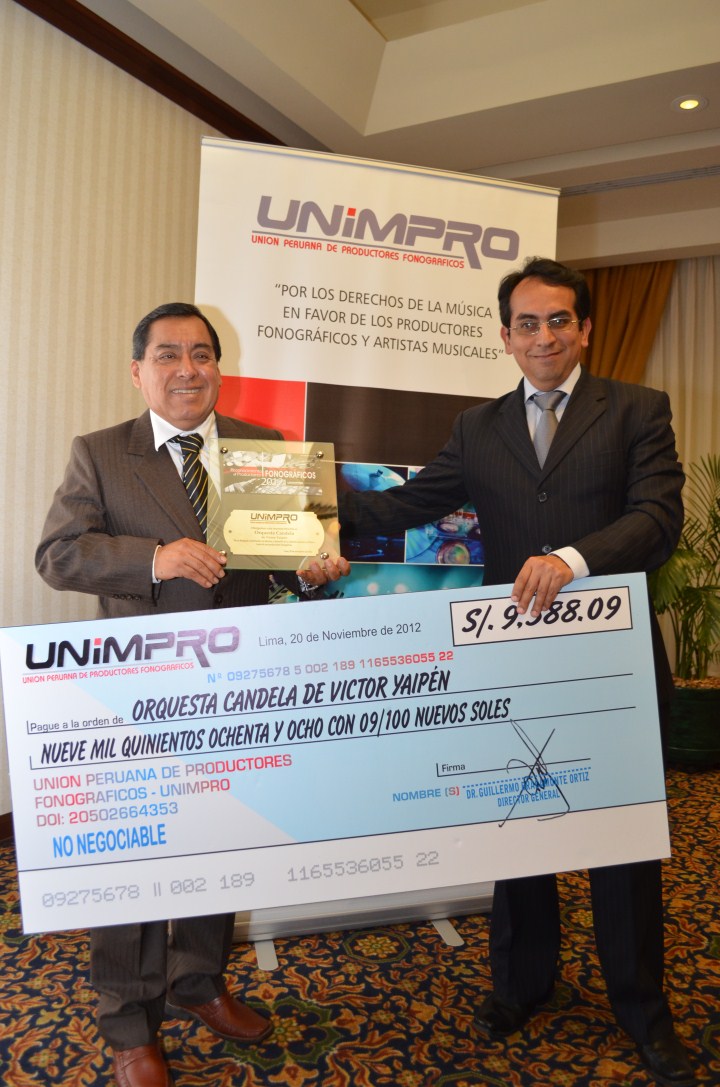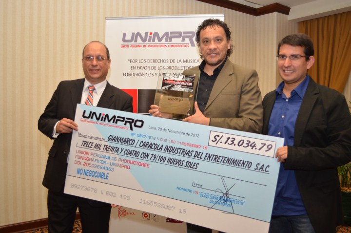 De esta manera, fueron reconocidos en una ceremonia especial los productores fonográficos de Sabor y Control con S/. 27,261.34 nuevos soles, Bareto S/. 25,300.45, Orquesta N´Samble S/. 13,718.56, Gianmarco S/. 13,034.79, Los Terapeutas del Ritmo S/. 11,415.74, Dilbert Aguilar S/. 10,954.45, Orquesta Candela S/. 9,588.09, Orquesta La Novel S/. 7,568.97, y Eduardo del Perú S/. 3,246.34, quienes recibieron el pago de sus regalías fonográficas correspondientes al periodo enero a octubre 2012.