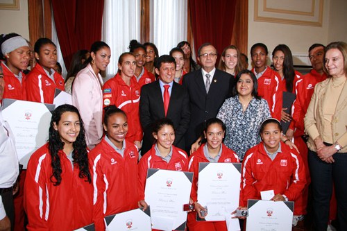El titular del Poder Legislativo, Víctor Isla Rojas, presidió en la sala Castilla del Congreso una ceremonia de premiación a las integrantes del equipo de vóley femenino-categoría menores, por haber obtenido el primer puesto en el XVIII Campeonato sudamericano de esa disciplina deportiva.