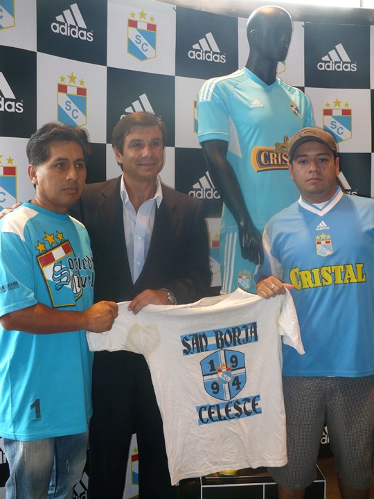 En el lanzamiento de la ‘celeste´ que se realizó en la tienda adidas de Comandante Espinar en Miraflores estuvieron presentes Raúl Marcenaro Rouillon, Gerente General de adidas Perú, Felipe Cantuarias Salaverry, Presidente del Directorio del Club Sporting Cristal S.A., quienes se mostraron muy contentos y develaron el maniquí mostrando ante todos, la camiseta oficial del campeón peruano diseñada por adidas.