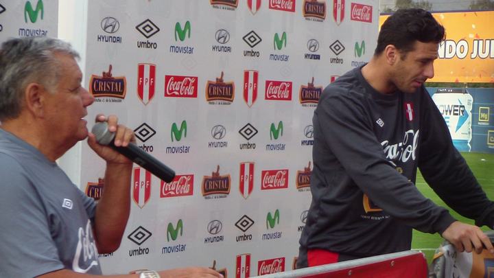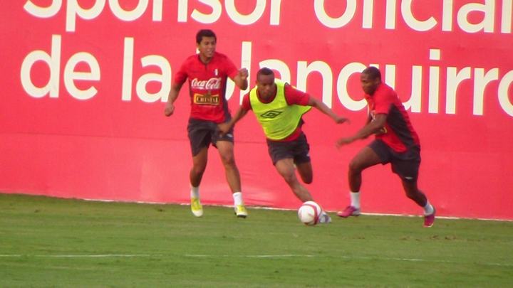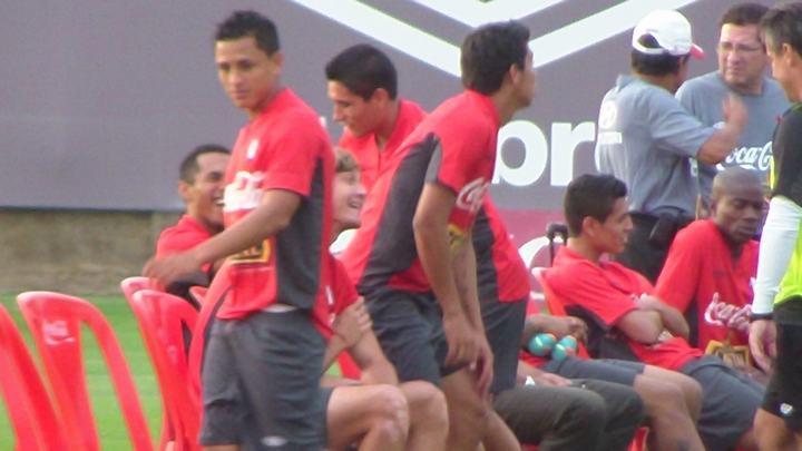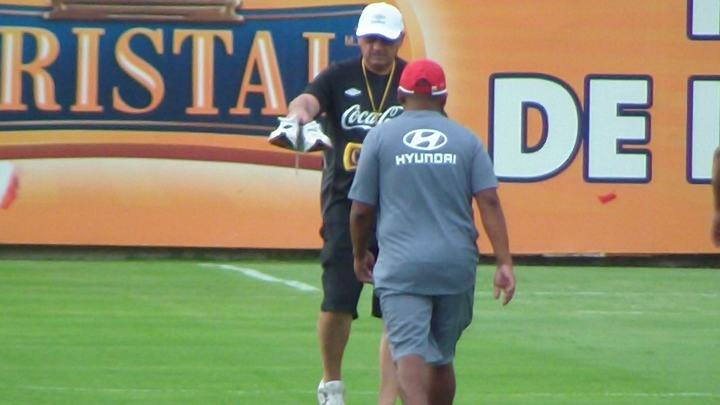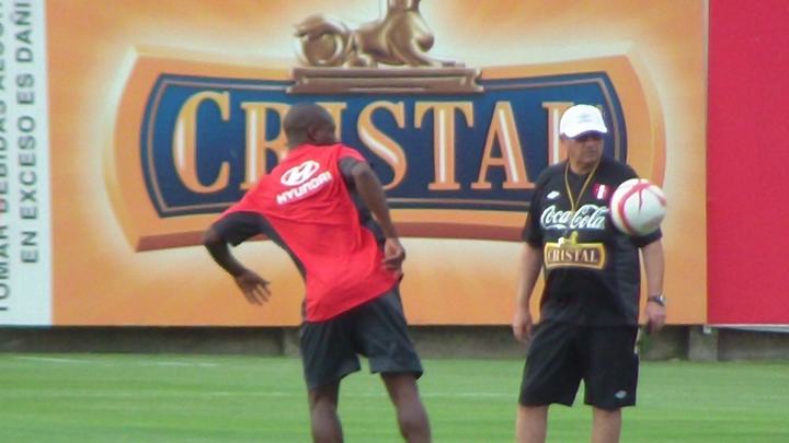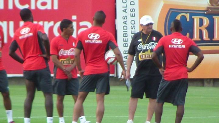 Entrenamiento de la Selección Peruana de Fútbol en la Videna de San Luis. Todos están atentos a las órdenes de Markarián.