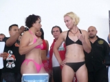 Valentina Shevchenko pasó hoy por el pesado oficial previo al enfrentamiento de mañana ante la María Elena Muñoz por el titulo mundial de Kickboxing.