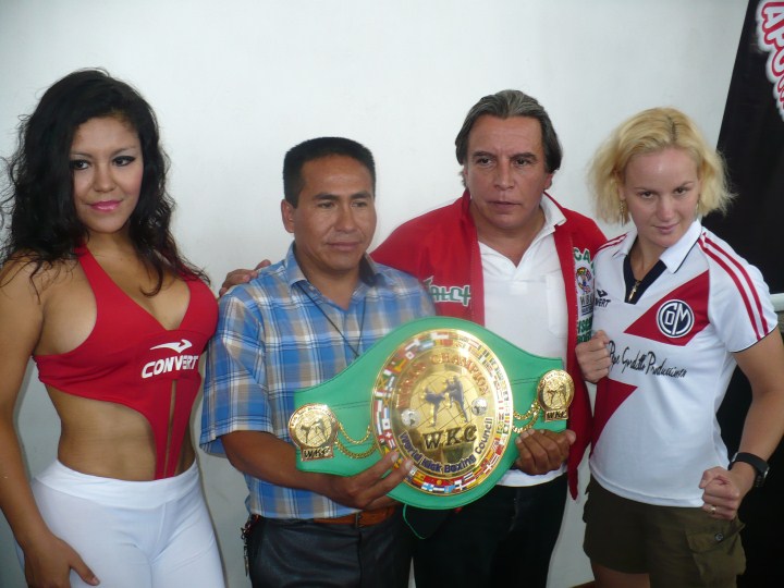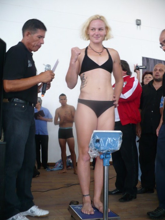 Valentina Shevchenko pasó hoy por el pesado oficial previo al enfrentamiento de mañana ante la María Elena Muñoz por el titulo mundial de Kickboxing.