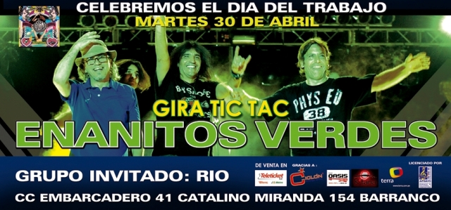 La banda de rock argentina LOS ENANITOS VERDES regresan al Perú para celebrar sus 30 años de vida artística, no solo tocarán en Lima sino en algunas provincias en in mintour que va del 26 de Abril hasta el 5 de Mayo. Se ha confirmado que su presentación en Lima se realizará el 30 de Abri