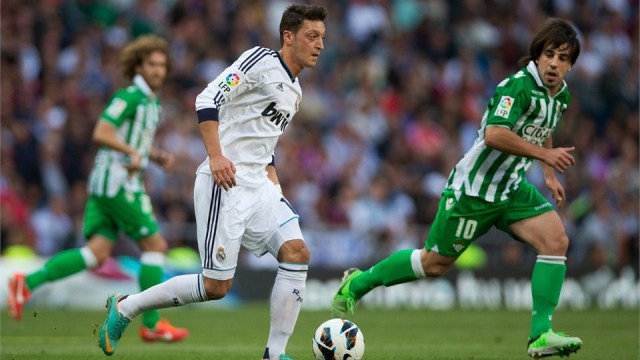 El Real Madrid está ganando al Betis en el Santiago Bernabéu. Los blancos, con la mente puesta en Dortmund, han salido con un once con muchas novedades. La mejor ocasión del partido la ha tenido Cristiano, pero su lanzamiento con la izquierda se estrelló con el palo. A falta de un minuto para el final del primer tiempo Mesut Ozil marcó el primero para el Real. Benzema anotó el segundo a los 56 minutos, en el segundo tiempo. Jorge Molina anotó de penal para el Betis. Al igual que al final de primer tiempo, Mezut Ozil marcó al final del segundo tiempo para cerrar el partido por un 3-1.