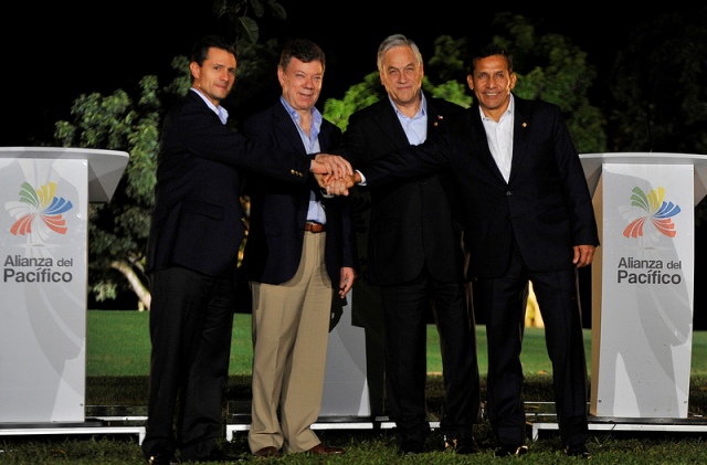 Los presidentes de Colombia, Juan Manuel Santos; de Chile, Sebastián Piñera; de México, Ernesto Peña, y de Perú, Ollanta Humala, acordaron eliminar la desgravación arancelaria de todo el universo de bienes y al menos un 50 por ciento tendrá arancel cero, desde la entrada en vigencia de este tratado, que será el próximo 30 de junio.