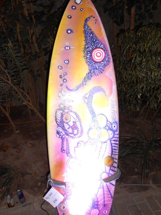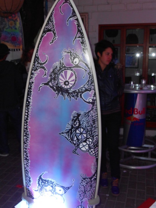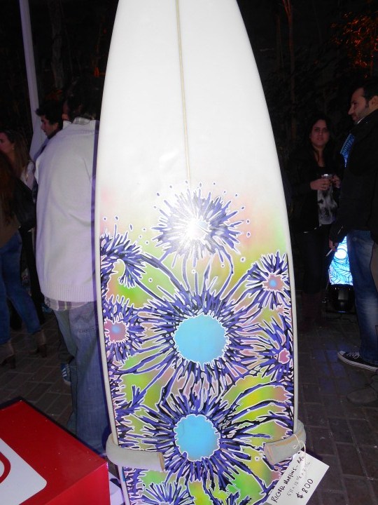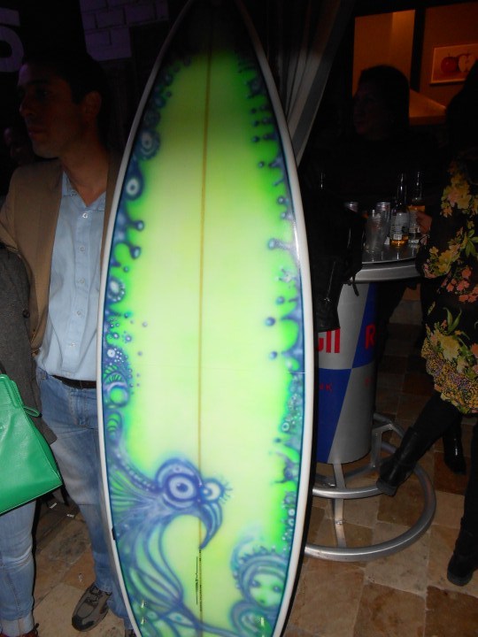 El campeón de surf puso sus tablas en manos de Gabriel Mujica. El artista las pintó y hoy lucen diseños únicos, que fueron exhibidos en exclusiva en una simpática noche.